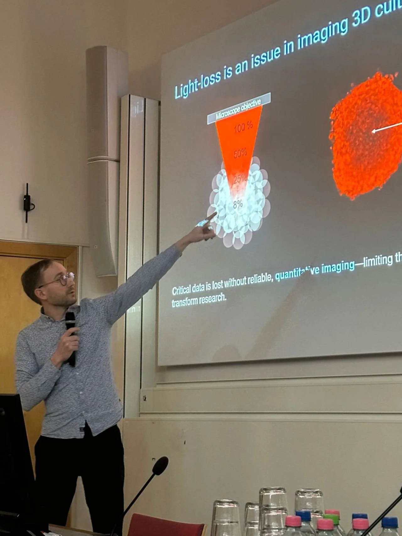 We presented our technology at the Lab & Diagnostics of the Future conference, sharing how we measure and correct light-loss in confocal imaging.